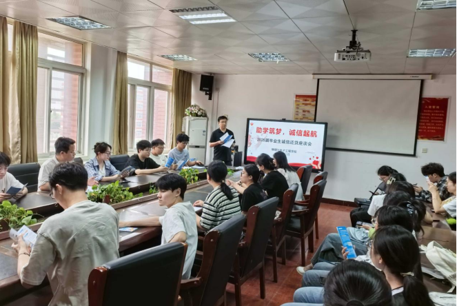 为深入宣传贯彻国家助学贷款政策,开展好学生资助政策“两节课”活动,切实做好2025届国家助学贷款毕业生的诚信还贷教育工作,5月9日下午,我院在A09学院会议室召开了“助学筑梦、诚信起航”座谈会。学工办主任谢德地老师和50余名受国家助学贷款资助的毕业生参加座谈会,学院资助专管员李文明老师主持座谈会。